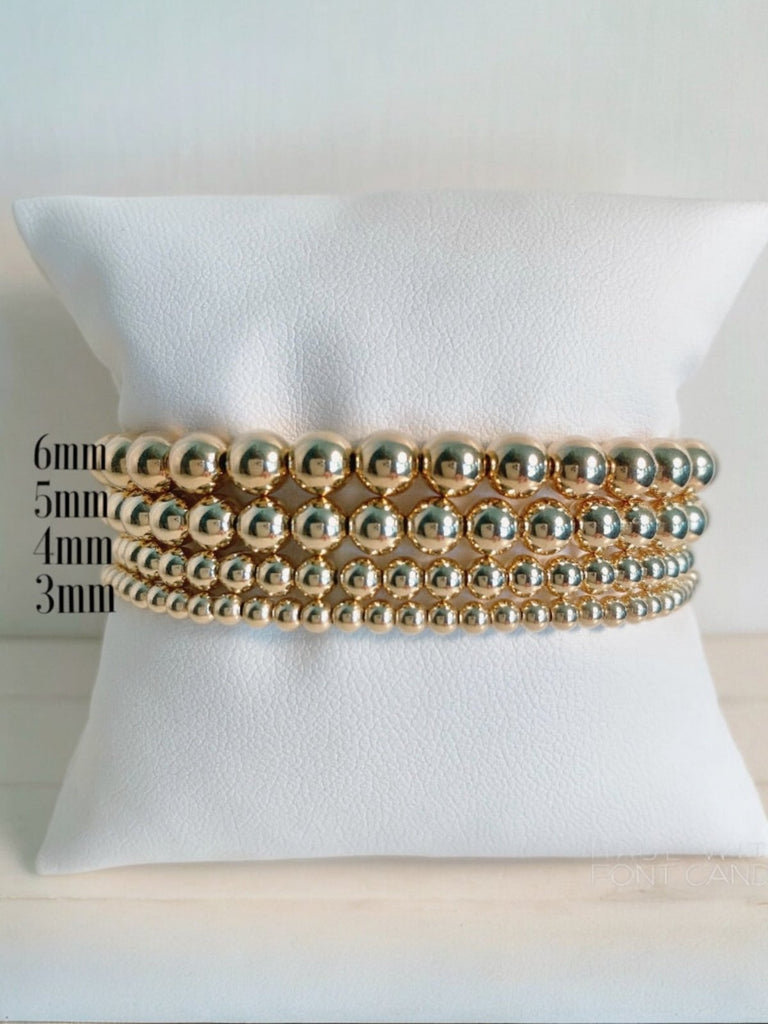 Made with 14K Gold-Filled beads and a durable elastic for a comfortable stretch to roll on and off your wrist OR choose to style up with our clasp finish and findings