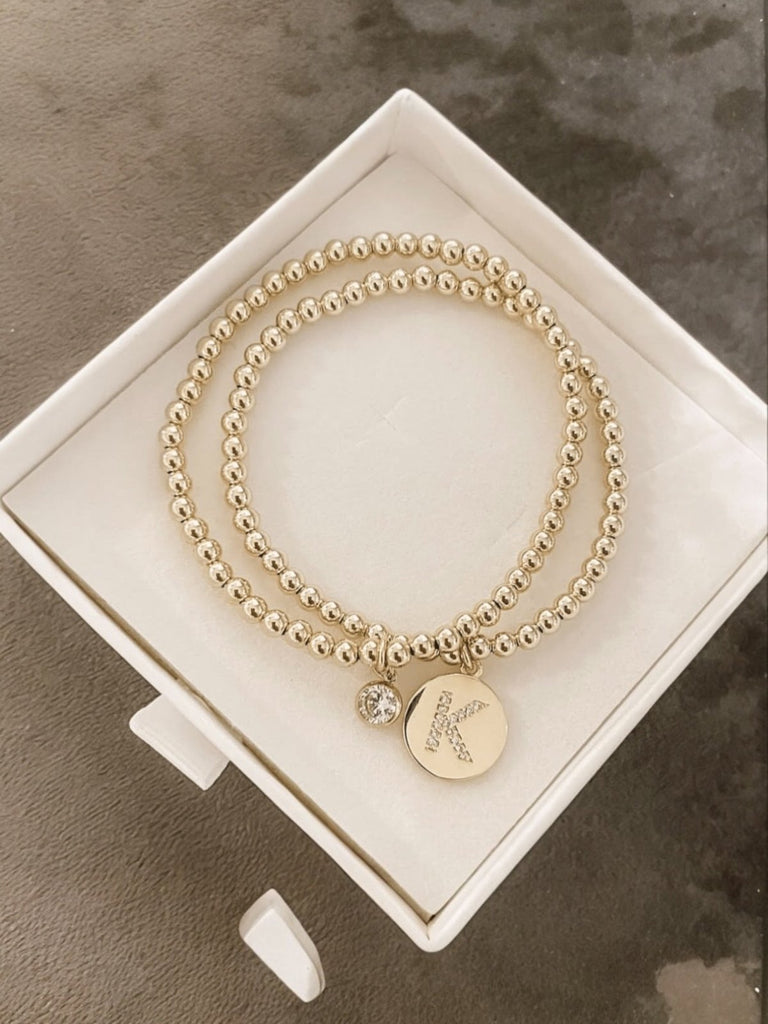 Made with14K Gold-Filled 4mm beads and a durable elastic for a comfortable stretch to roll on and off your wrist OR choose to style up with our clasp finish and findings