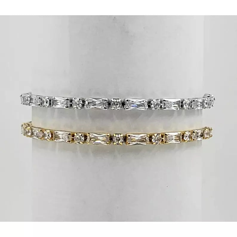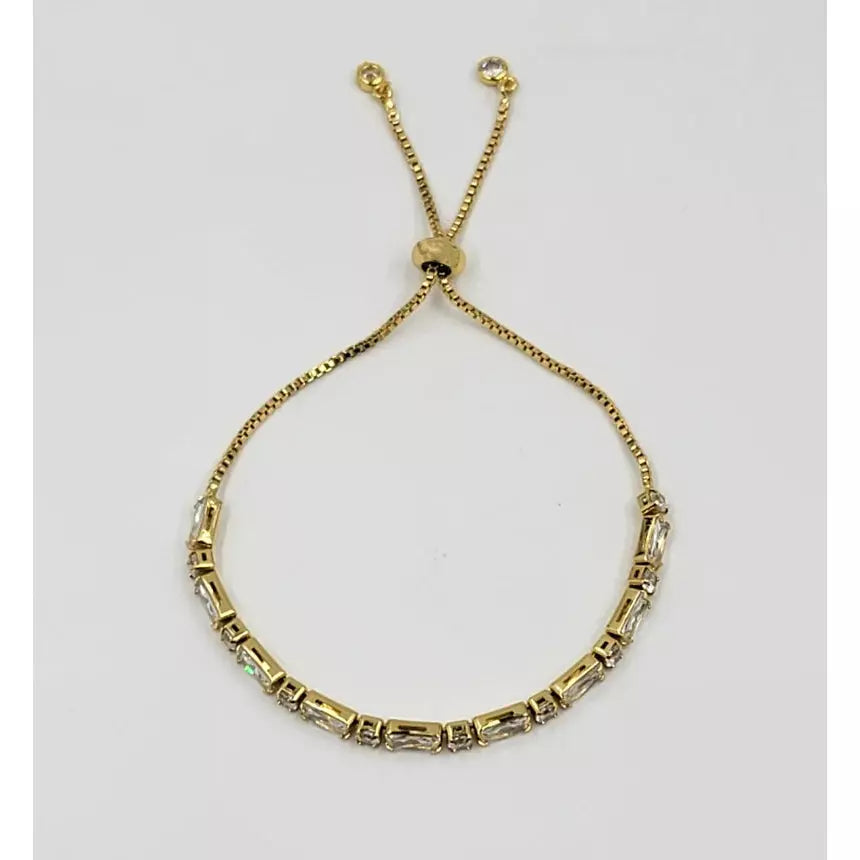Sarafina - Round Adjustable Baguette Bracelet with Cubic Zirconia with Rubber Stopper