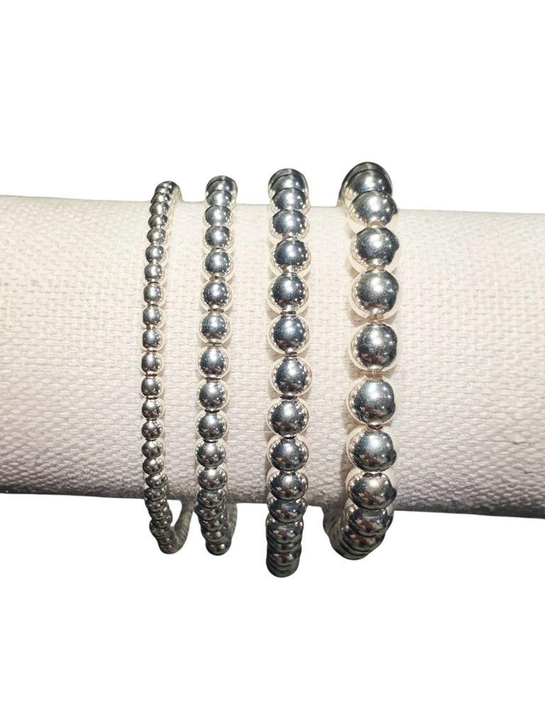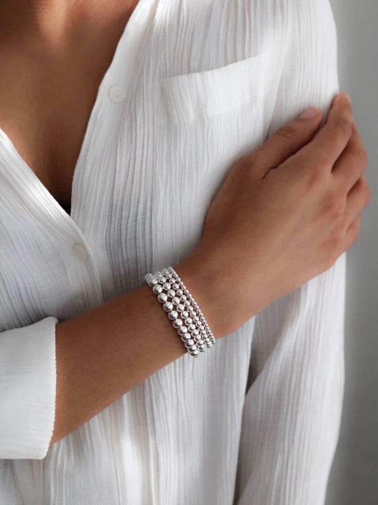 Made with Sterling Silver beads and a durable elastic for a comfortable stretch to roll on and off your wrist OR choose to style up with our clasp finish and findings