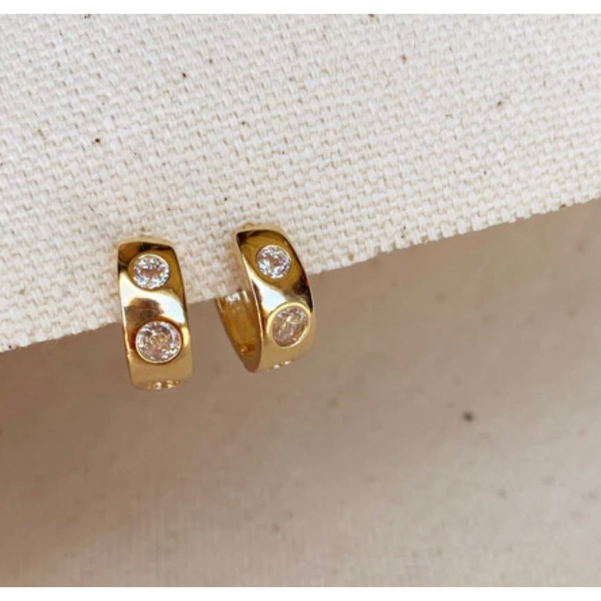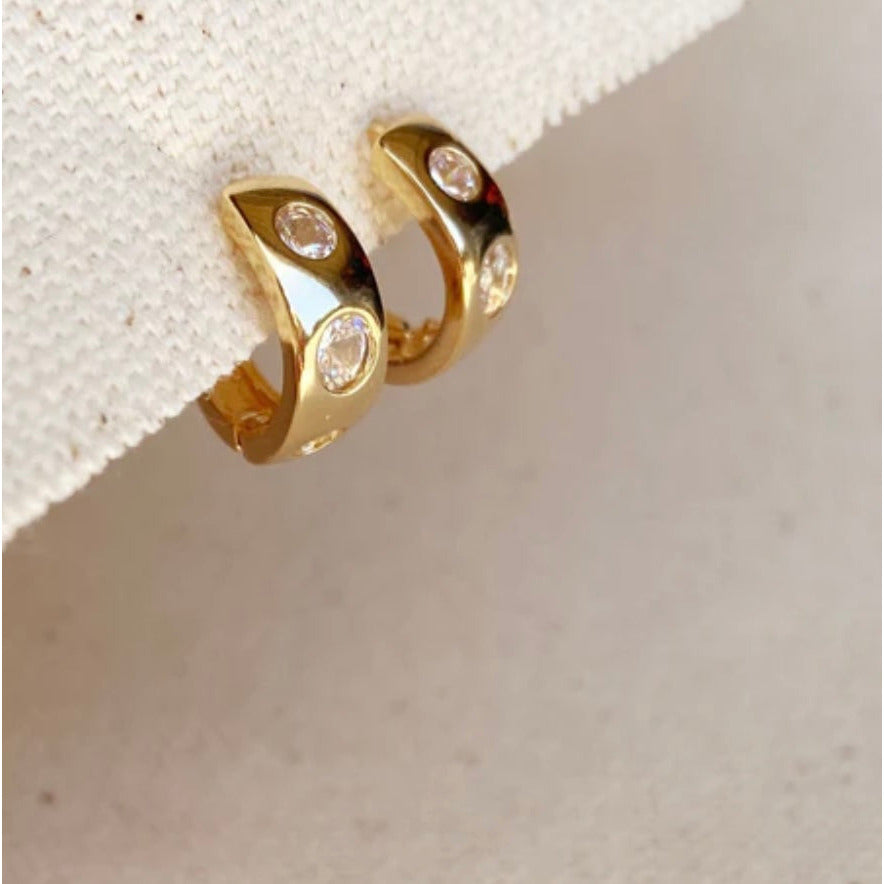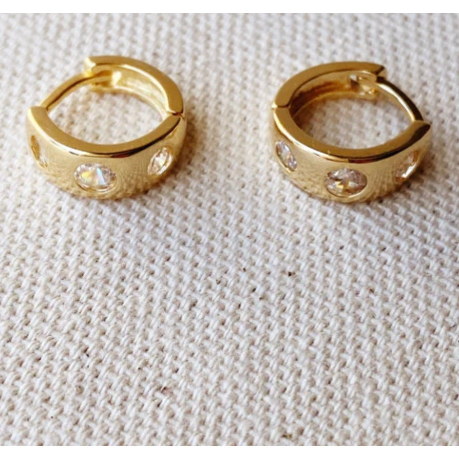 18k Gold Filled Huggie CZ Hoop Earrings