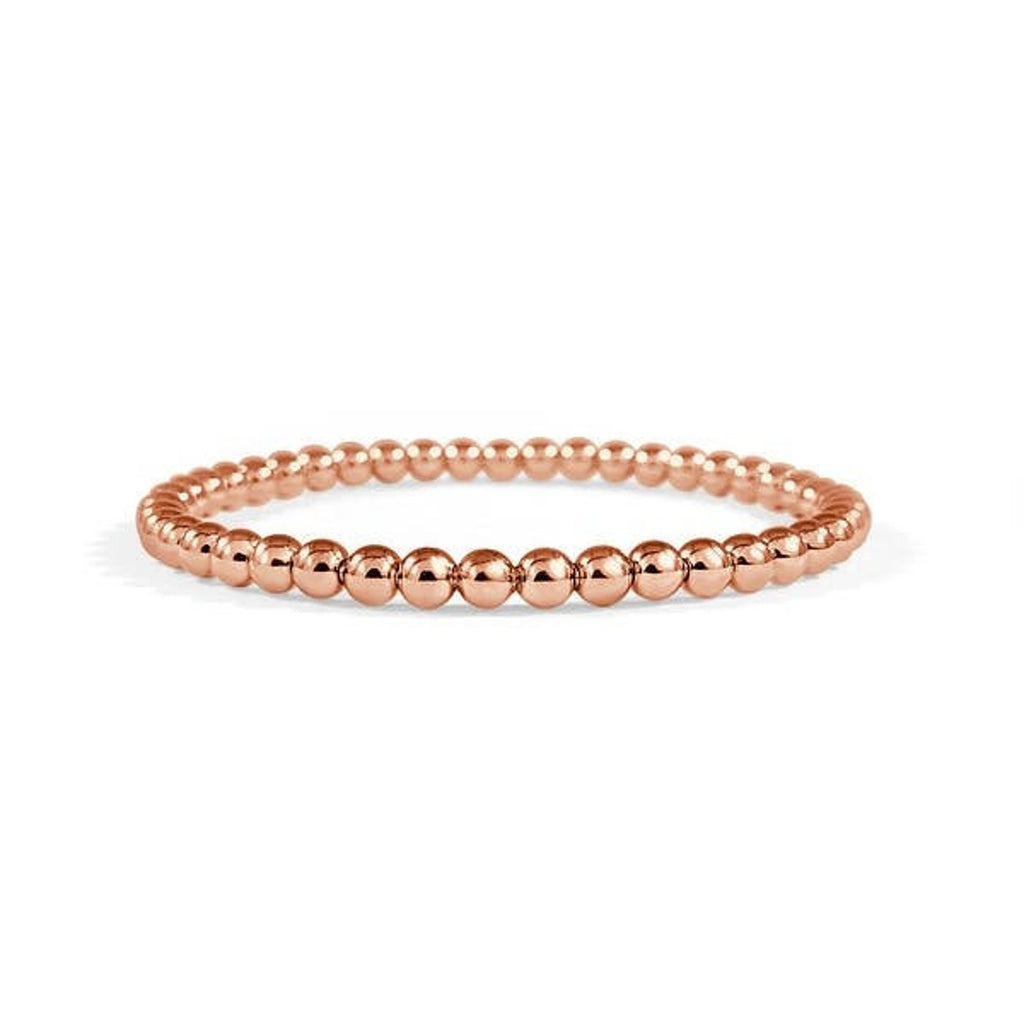 Made with 14K Rose Gold-Filled beads and a durable elastic for a comfortable stretch to roll on and off your wrist OR choose to style up with our clasp finish and findings