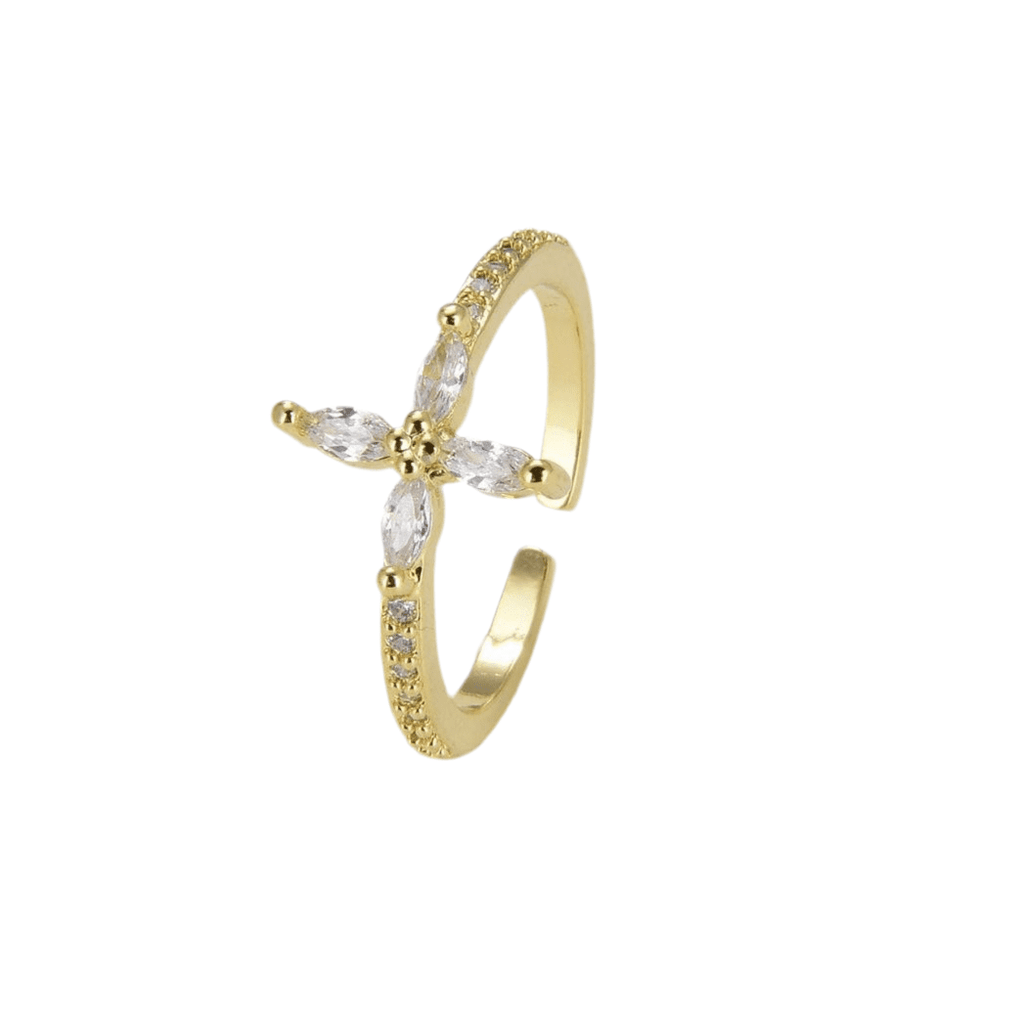 Rosa - Cubic Zirconia Gold Cross Ring