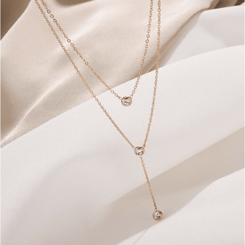 Sabrina - Multilayered Rose Gold necklace with Zircons
